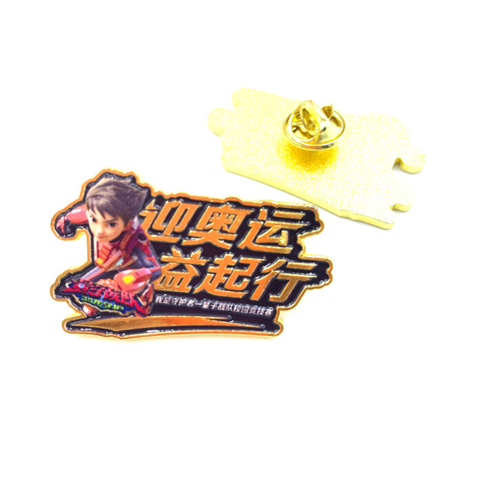 Item | Gold die struck soft enamel pin UV print with stamp logo at backside 2D design iron soft enamel pin |